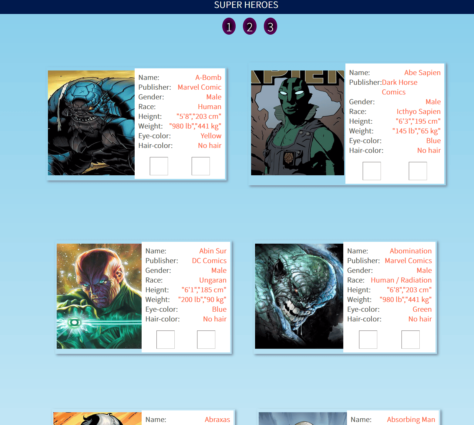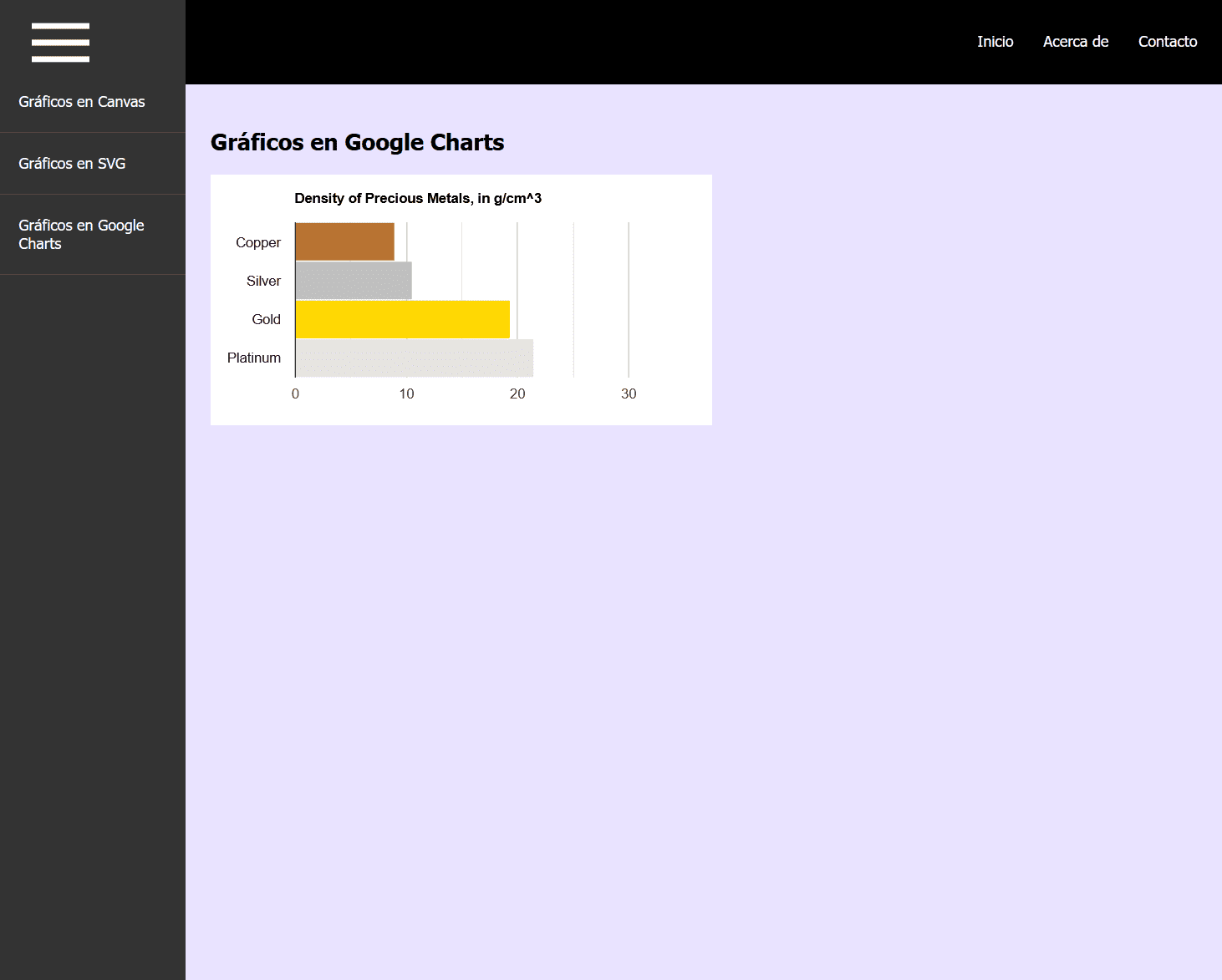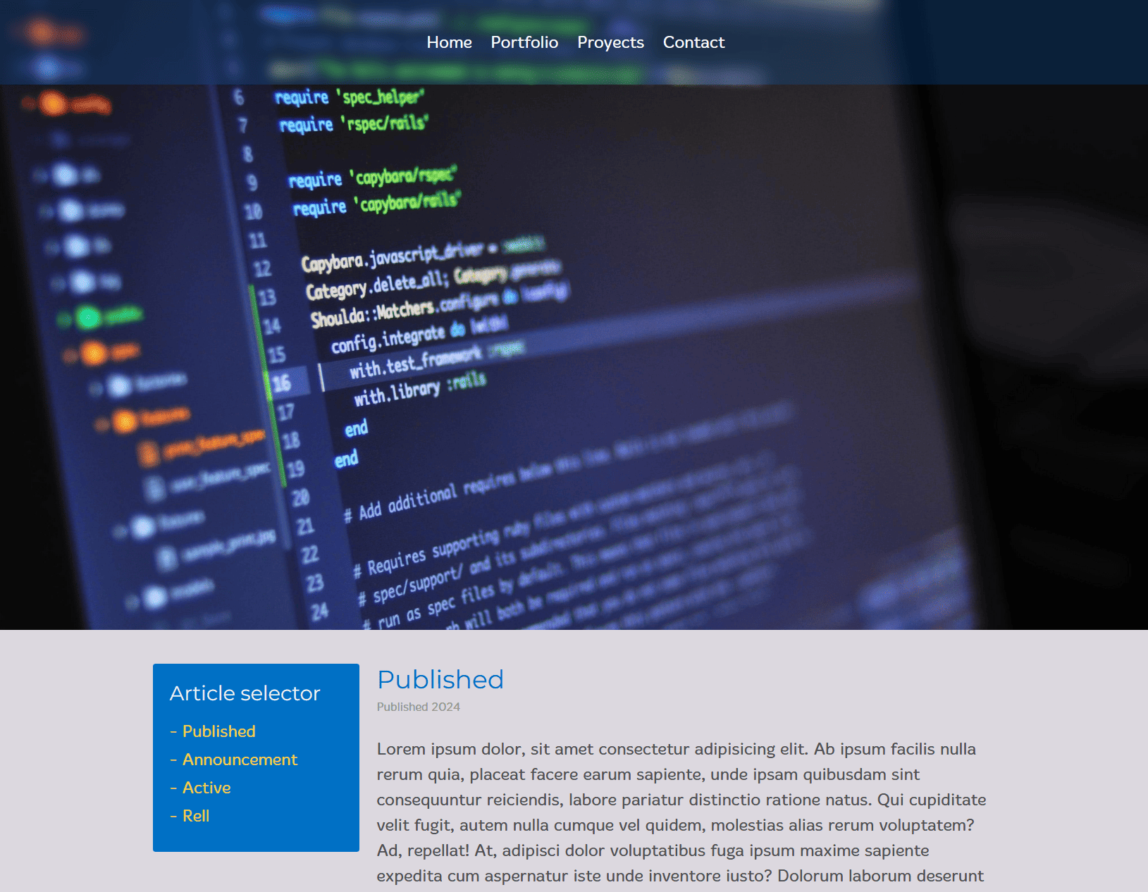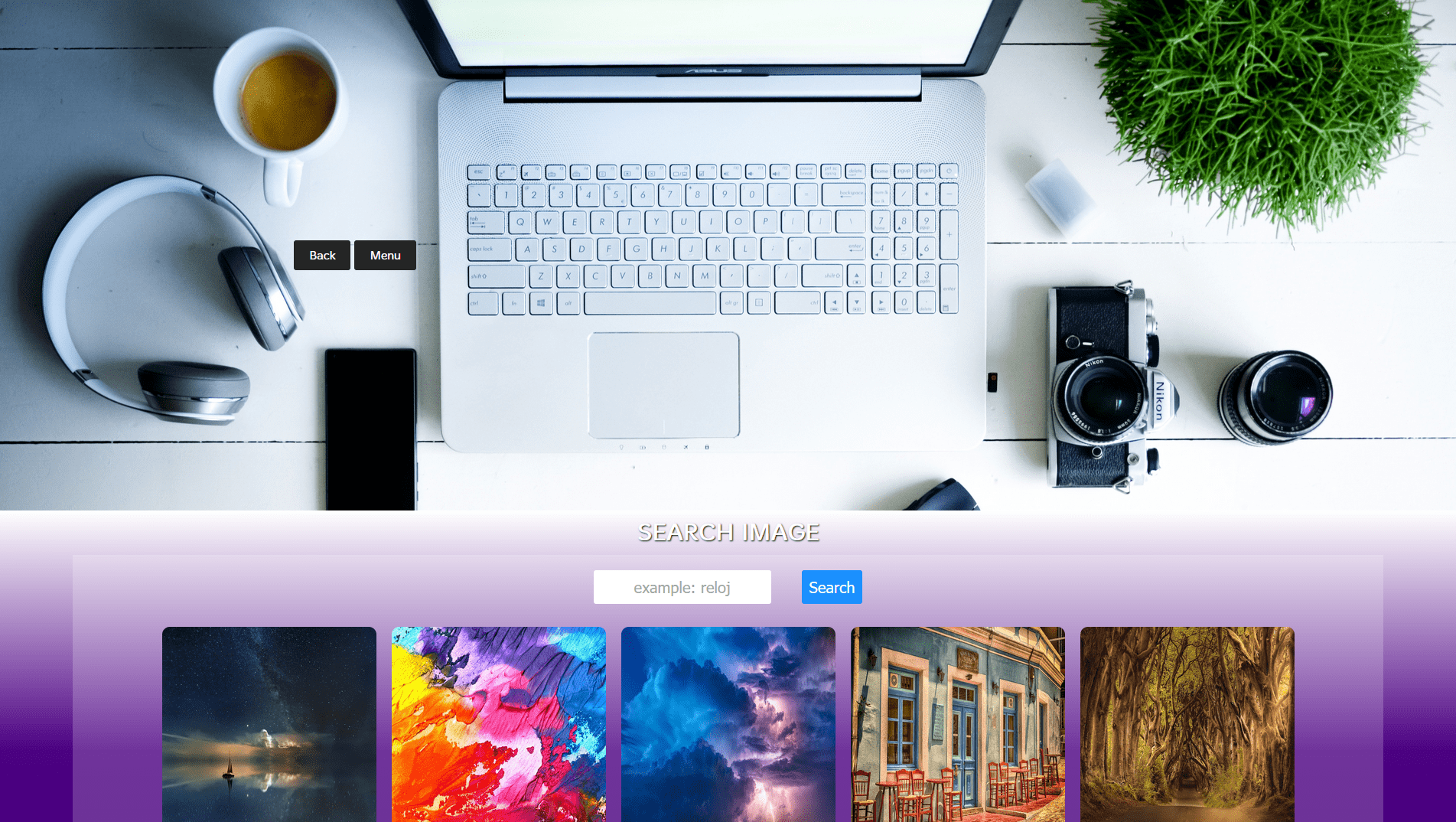 page with diferent options of menus, options and accessible